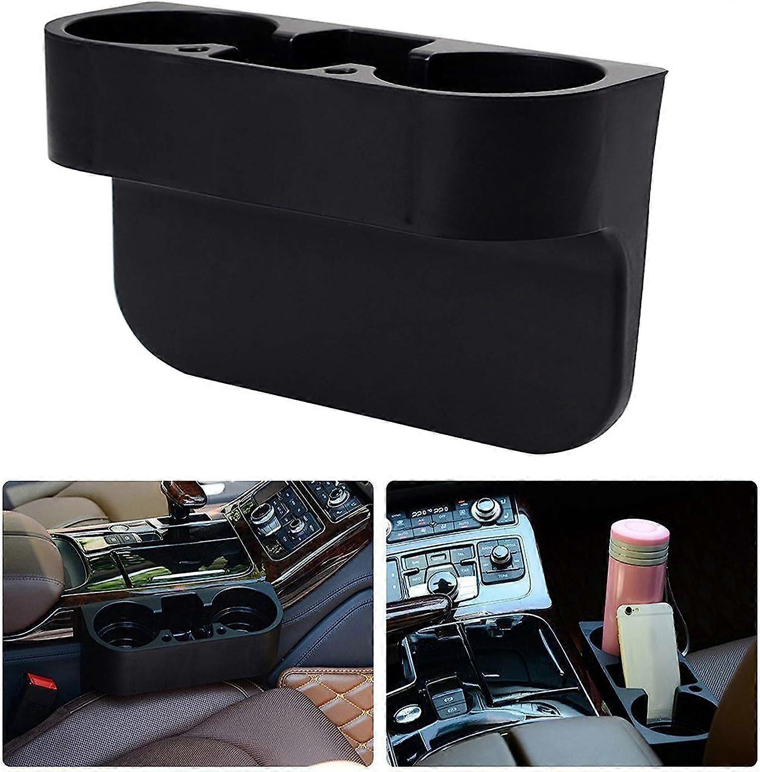 Dww-1pc (Black) Car Cup Holder, 3-in-1 Car Seat Gap Organizer Storage Box, Double Water Bottle Cup Holder Mobile Phone Holder for Cars and Trucks