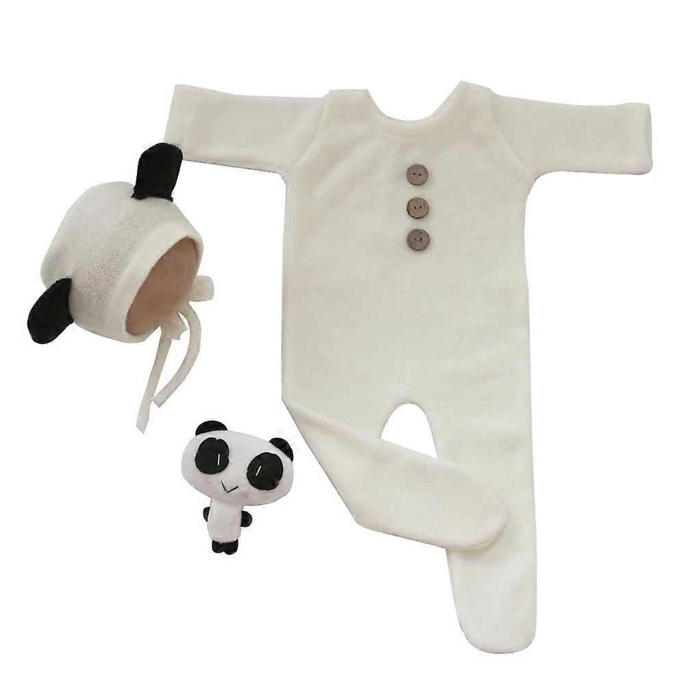 Newborn Photography Props Baby Knitted Romper Cute Bear Ears Hat Bear for Doll Set Infants Photo Shooting Beanies Cap Jumpsuit Bodysuit for Doll Kit F