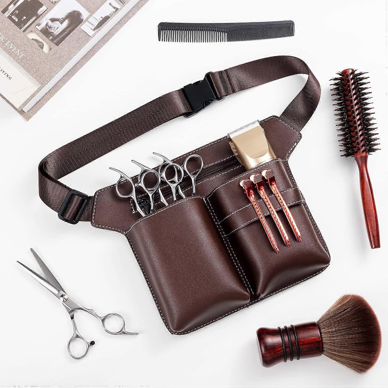 Dww-Brun-Synthetic Leather Barber Scissor Bag with Belt for Hairdressing Scissors, Hair Salons and Spas