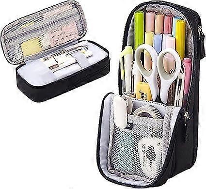 Dww-(Black) Large Capacity Pencil Case, Vertical Pencil Bag, Stationery Storage Bag, Large Pencil Case for Makeup, Cosmetics, Portable Bag for Junior