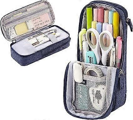 Dww-(Blue) Large Capacity Vertical Pencil Case, Stationery Storage Bag, Large Pen Case, Makeup Cosmetic Bag, Portable Office Bag for Junior High Schoo