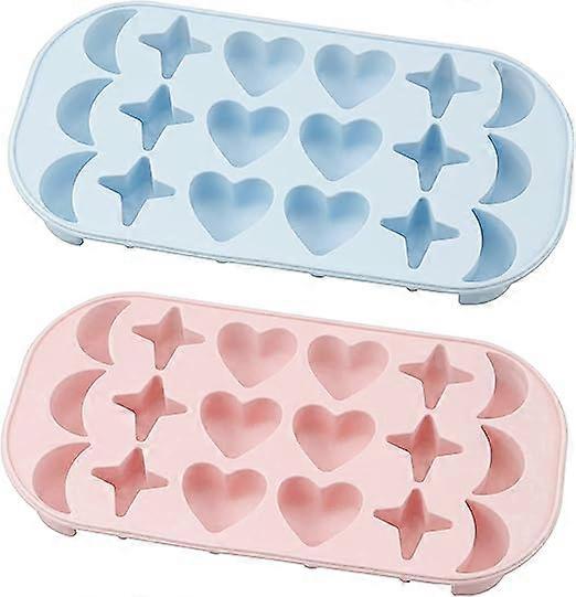 Dww-(Light Blue + Light Pink) Pack of 2 silicone ice cube trays with transparent lids for freezer, coffee, juice and drinks