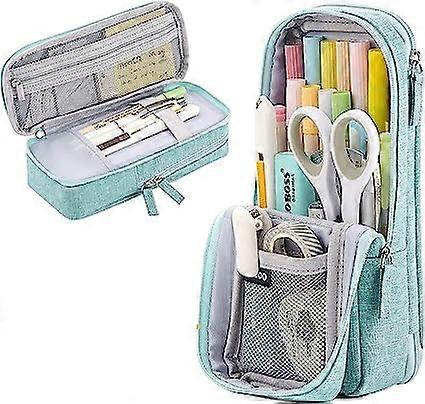 Dww-(Green) Pencil Case, Large Capacity Vertical Pencil Bag, Stationery Storage Bag, Large Pencil Case for Makeup, Cosmetics, Portable Bag for Junior