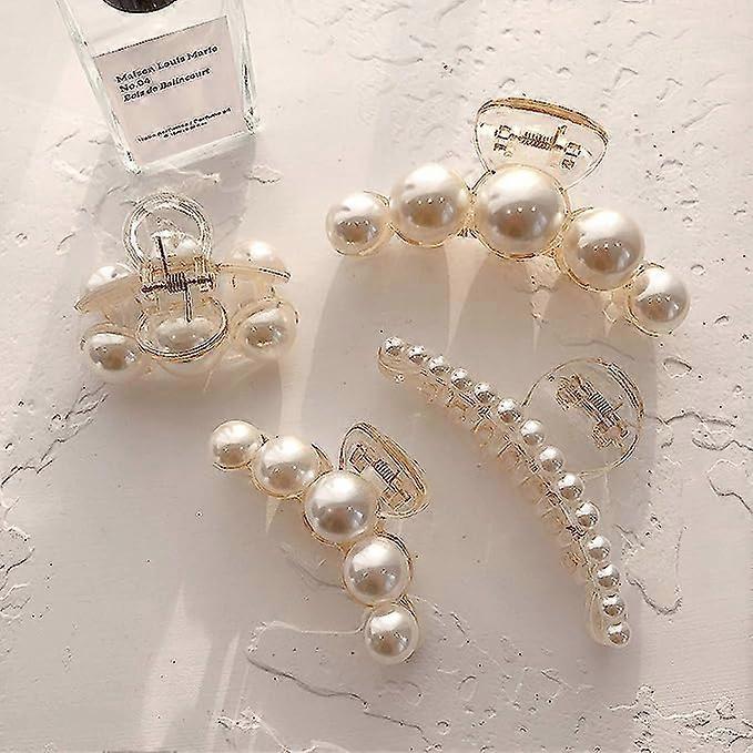 Pearl hair clips: 4 different sizes for your reference, large (9.5 cm), medium (7 cm), small (4.3 cm), paperclip (10 cm). 4 combinations to meet your daily needs.Material: High-quality resin and strong spring material, can hold even very thick hair. Artificial beads are used to create a very smooth surface, so you don't have to worry about damaging or shedding your hair when wearing it. The beads are also made of plastic.Application: Hair clips are a great tool for securing your hair when you shower or wash your face. When you're ready to apply makeup, clip your hair away from your face.Occasion: Suitable for shopping, travel, and other occasions; can be paired with various hairstyles. Create casual, messy hairstyles for everyday work, the office, or on the go.EASY TO USE: No complicated steps, just twist and cut the hair, a firm hold will not fall out of the hair.