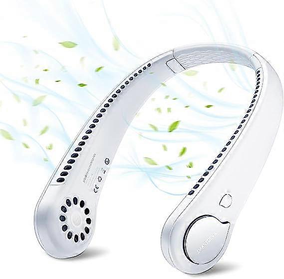 Dww-(White) Portable Neck Fan with 3 Speeds, 48 Air Outlets - Personal Ceiling Fan, Hands-Free, Bladeless, Rechargeable Battery Powered, 360 Degree Co