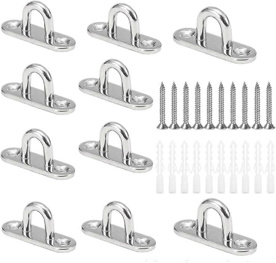 Dww-10 Pieces M5 U-Shaped Ceiling Hooks in 304 Stainless Steel with 15 x 45mm Base, Wall Mount Eye Plates for Securing Cords on Boats and Yoga Equipme