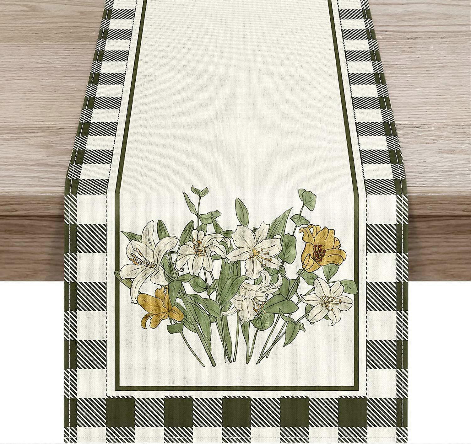 Dww-Summer Decorative Table Runner 33 x 180CM (Green Checkered Leaves), Burlap Table Runner for Wedding, Summer, Autumn Festival, Outdoor Party Decora