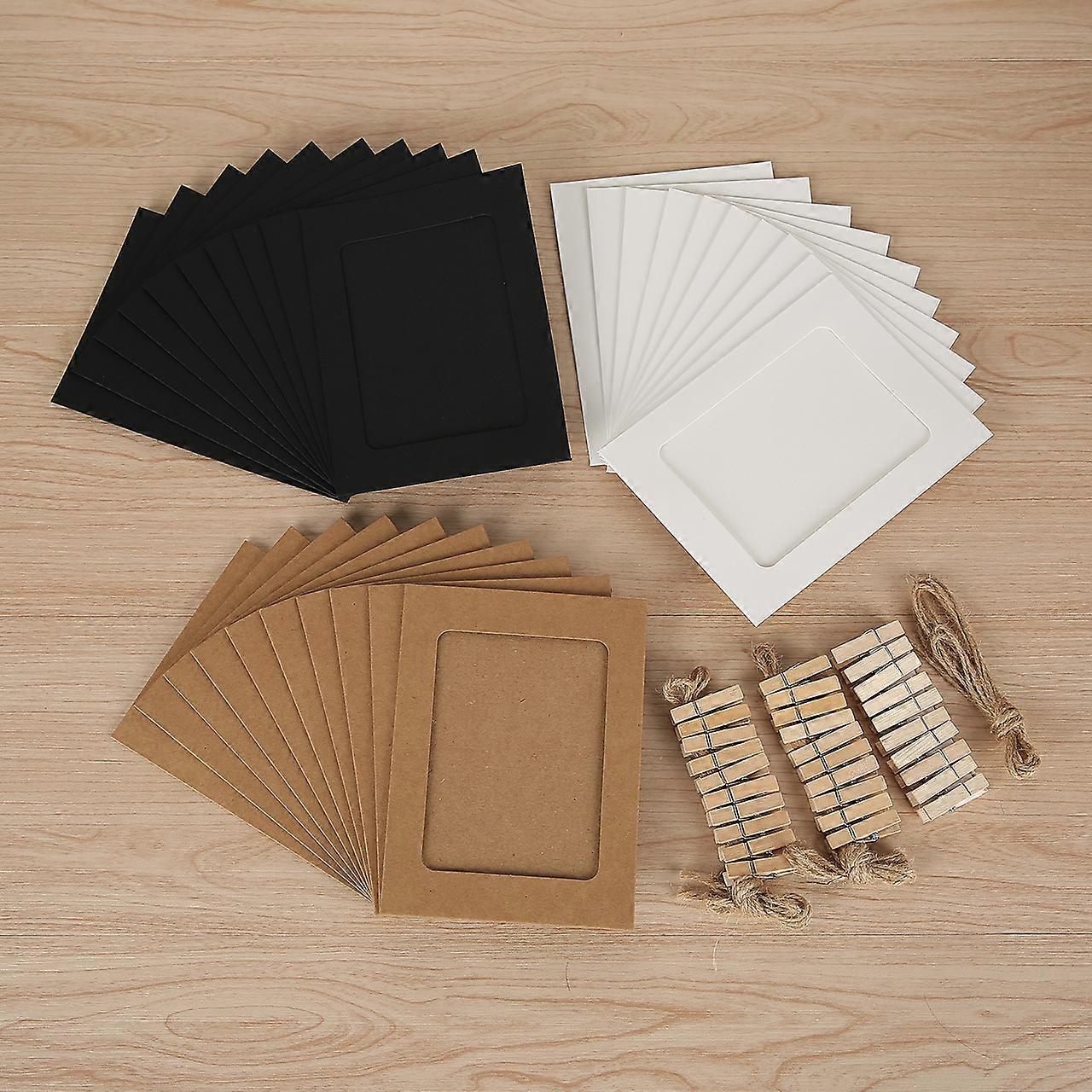 Dww-30pcs 4x6in Kraft Paper Hanging Photo Frames DIY Wall Decoration with Clips and Strings for Photos
