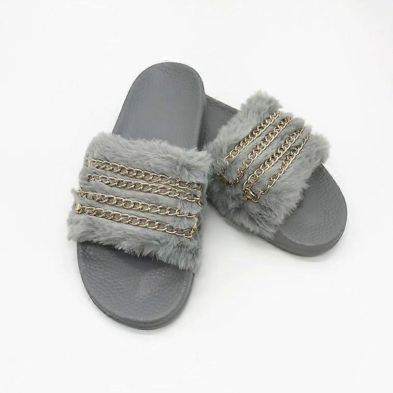 Bear Plush Slippers for Women Summer Chain Slippers Plush Leisure Women's Chain Multi Sandals Women's slipper Slides Slippers for Women Hard Sole (Bla