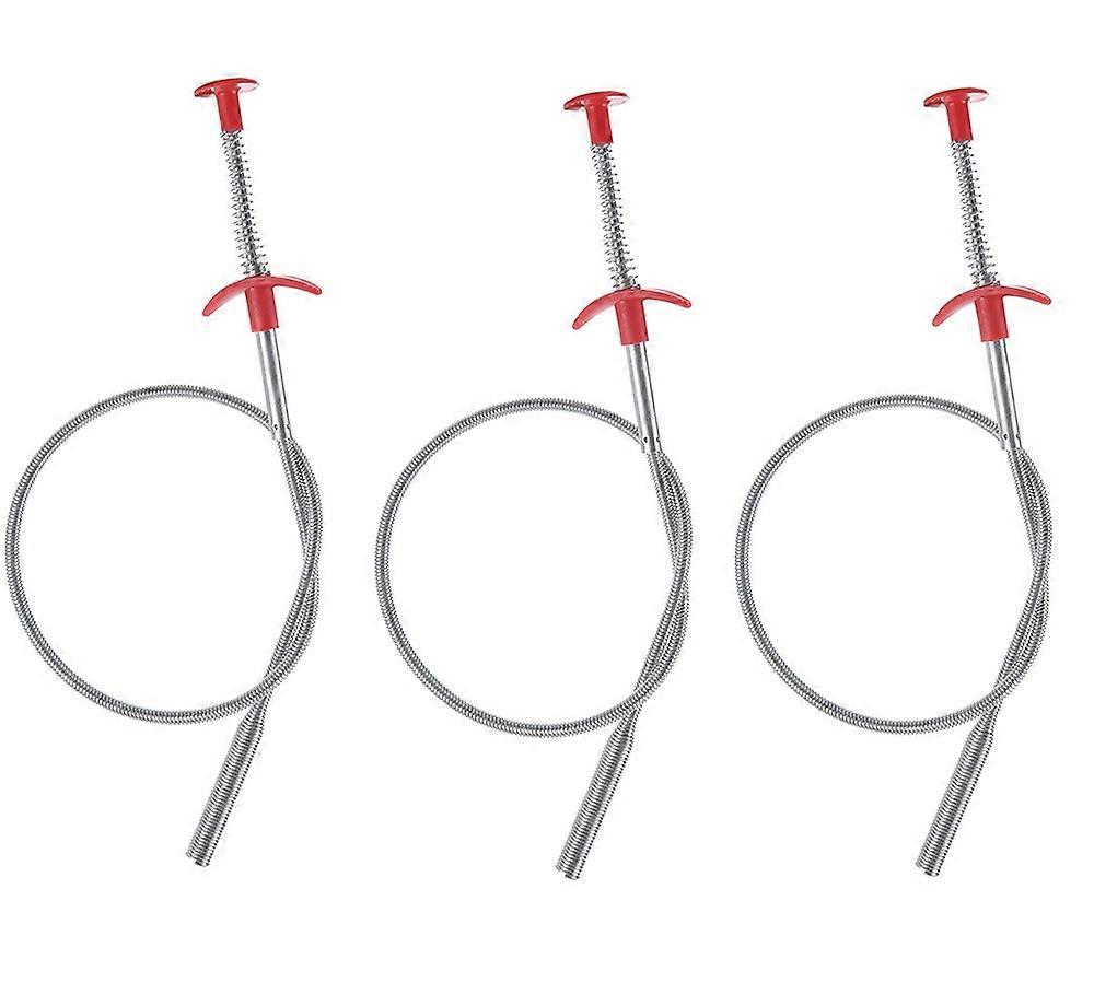 Dww-Set of 3 60CM Spring Pipe Dredging Tools, Stainless Steel Drain Uncloggers, Sewer Dredging Tools, Hair Cleaning Tools for Kitchen Sinks, Bathrooms