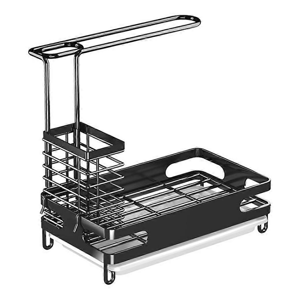 Sink Faucet Drain Rack 304 Stainless Steel Black with Rag Rod Chopsticks Holder Drain Basket Drawer Removable Plate