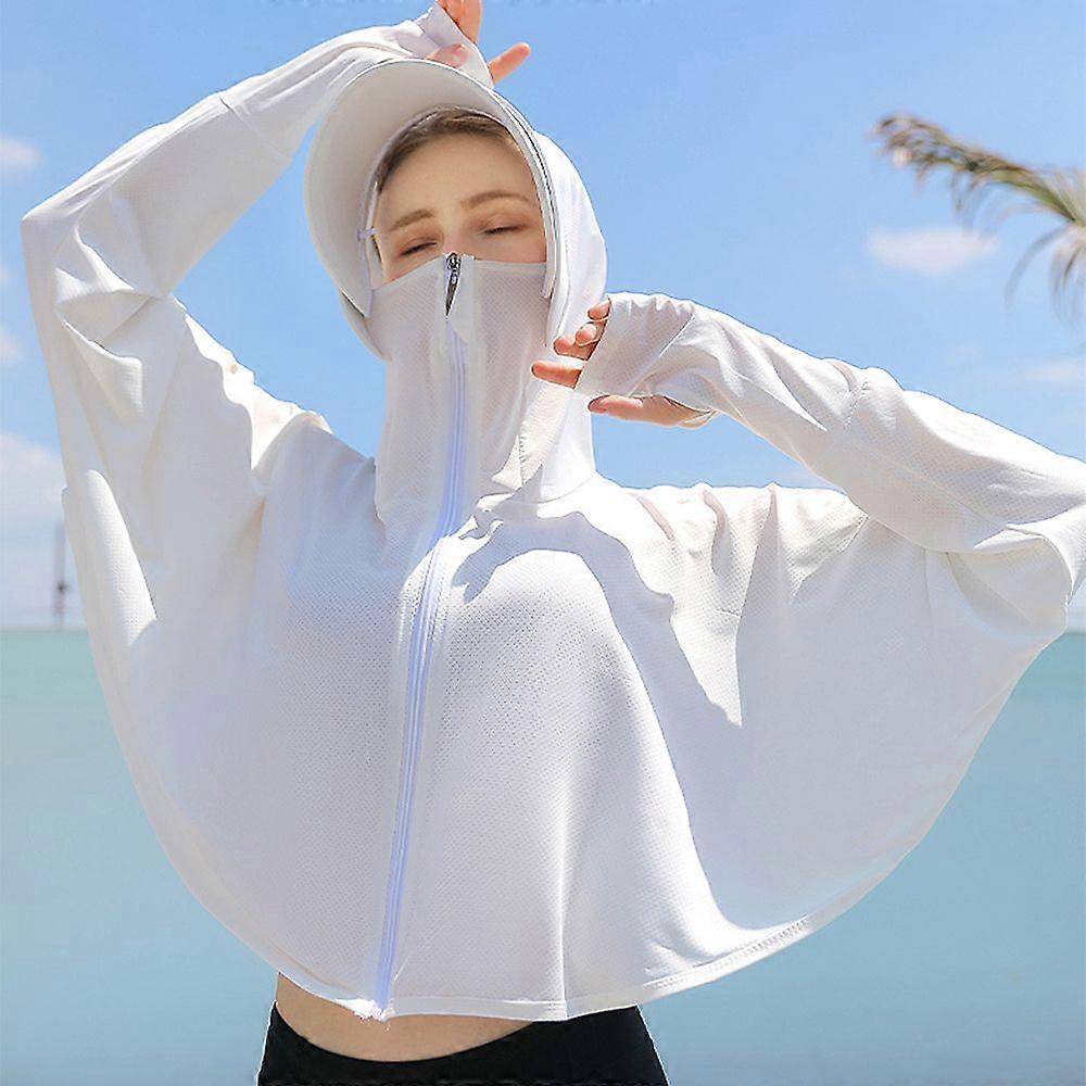 Summer UPF50 + Women Sunscreen Hoodie Long-sleeved Solid Color and Thin Jacket Breathable UV Protection Shirt Ice Silk Clothing