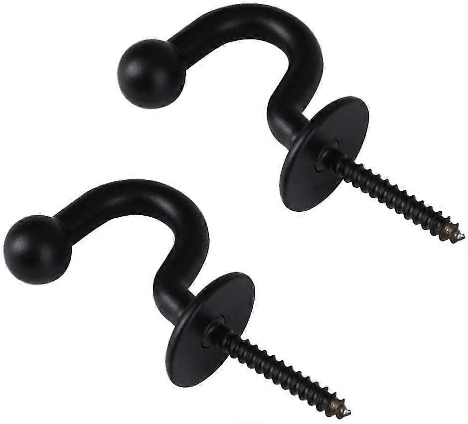 2Pcs Curtain Hooks Metal Pair Wall Mounted Decorative For Coat Drape Bags (Black)