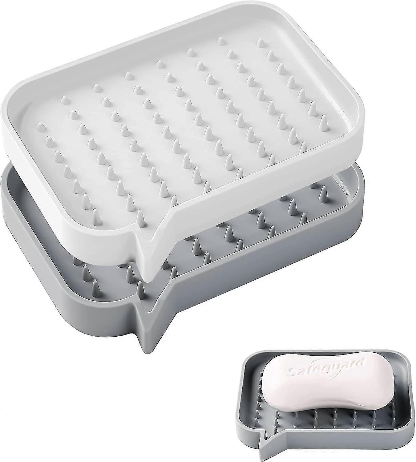 2PCS Silicone Self-Draining Soap Dish, Non-Slip Holder for Bathroom or Kitchen Countertop