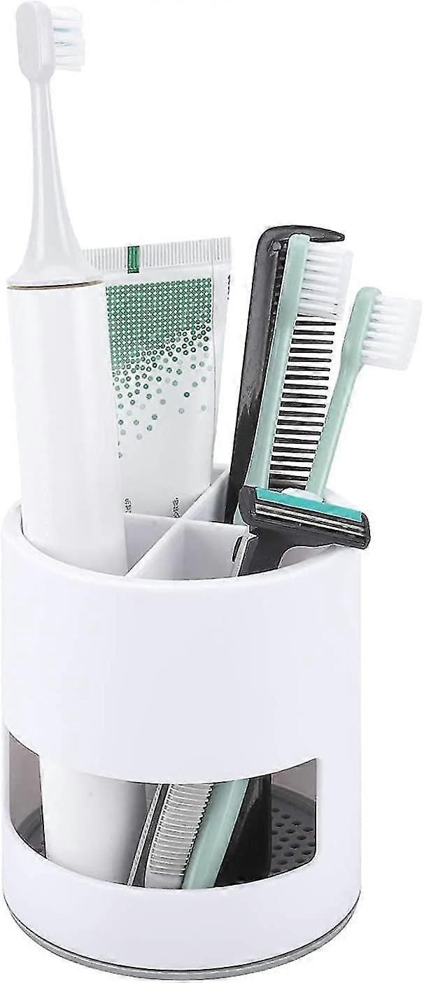 Compact & Travel Size- Our toothbrush holder features a space-saving design, making it an ideal travel accessory, perfect for storing in small bathrooms with limited spaceTough Material- This toothbrush holder is made of high-quality and sturdy ABS plastic, which is durable.Multifunction- This toothbrush holder has 4 compartments, which can store toothbrush, toothpaste, razor, facial cleanser, comb, cosmetic pencil and other items. Suitable for use in different scenes such as bathroom, kitchen, bedroom, office, etc., the size is 11*10cmQuick and Easy Clean- There are many small drainage holes on the bottom to ensure fast drainage, and large ventilation holes allow air to circulate and dry quickly. The drip tray designed on the bottom can store dripping water so as not to wet your countertop. And the drip tray is detachable, just remove the drip tray and rinse it, which is very convenient.