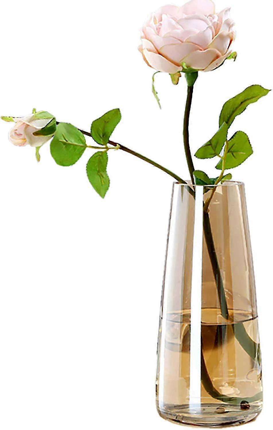 Modern Glass Vase, Crystal Brown, Transparent Small Flower Arrangement Desk Vase