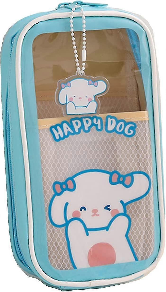 Large Transparent Pencil Case Cute Girl School Supplies Blue Dog
