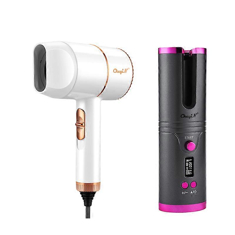 CkeyiN 220V Professional Electric Hair Dryer Blow Dryer Mini Blowe Dry Hairdryer+Portable Automatic Hair Curling Iron Air Curler