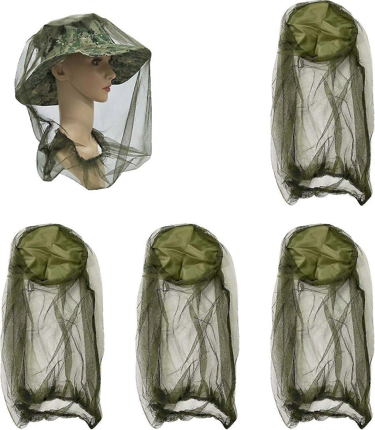 5pcs Mosquito Head Net Anti Insect Midge Net Head Cover, Head Net Mesh For Outdoor Hiking Camping Fishing(without hat)