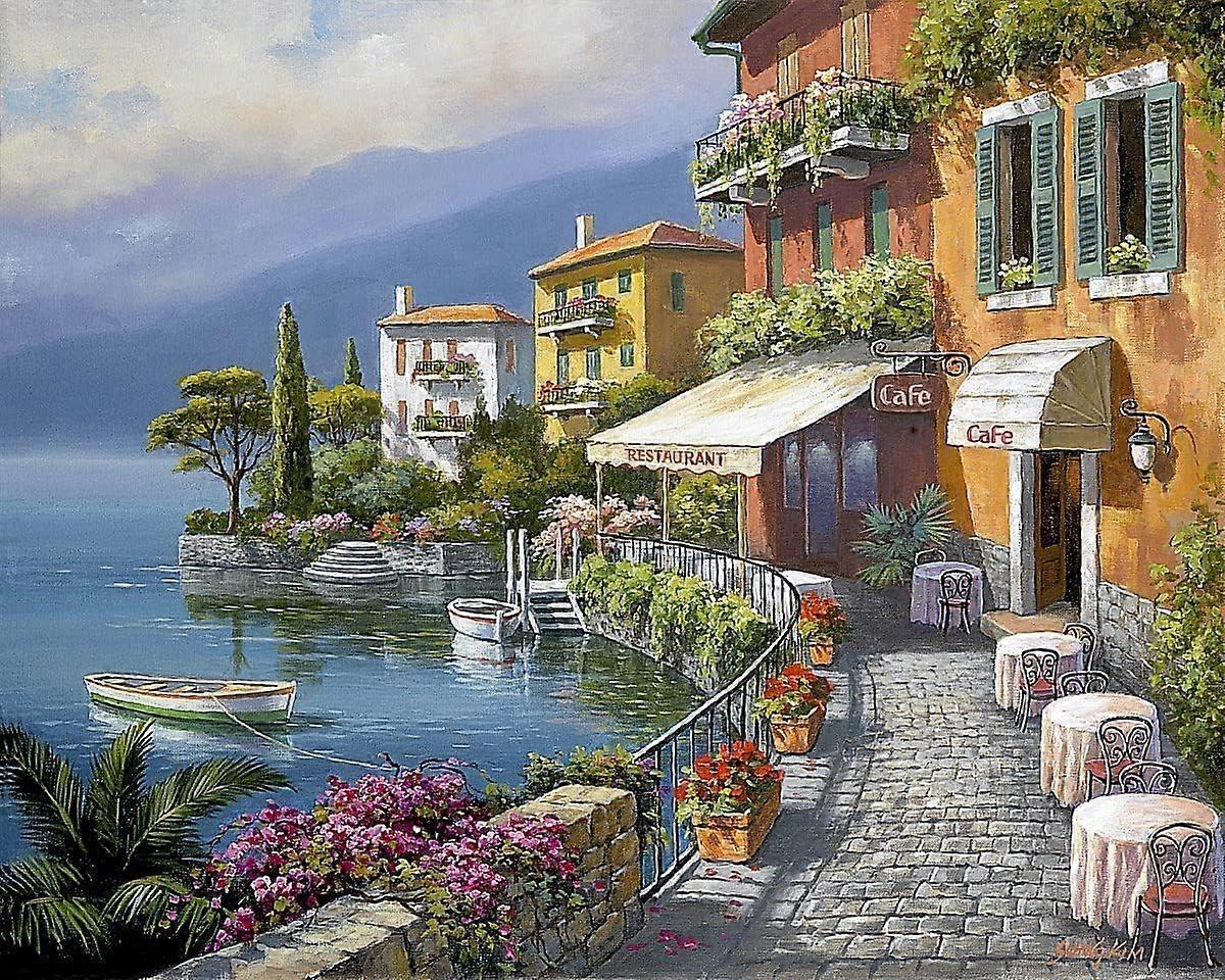 5D Diamond Painting Kits for Adults Kids Diamonds By Numbers Seaside Town Full Cross Stitch Kit Rhinestone Diamond Embroidery for Home Wall Decor (30x