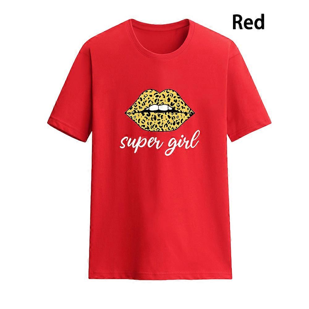New summer fashion t-shirt women's leopard print superwoman lips graphic cute funny top O-neck t-shirt