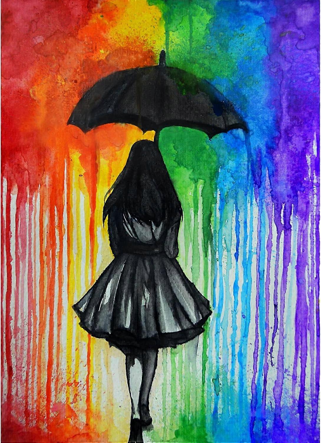 Diamond Painting the Girl Under the Umbrella, Diamond Embroidery Full Kit Diamond Painting Girl Full 5D Diamond Painting for Adult Kids, Round Crystal