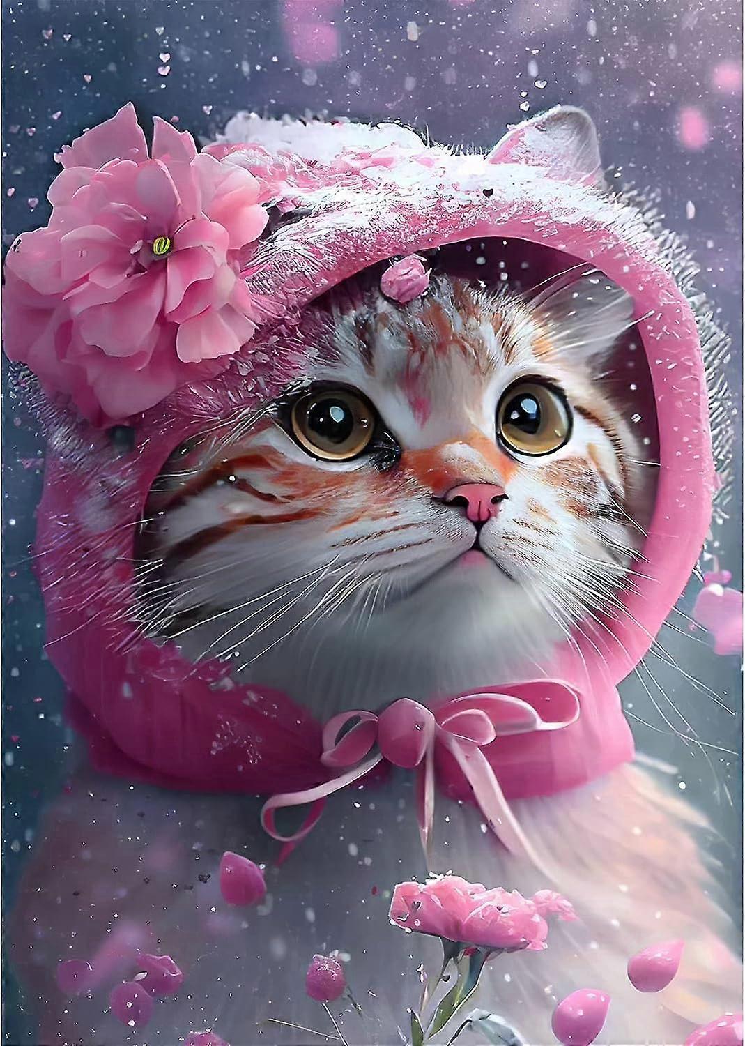Dww-30 x 40 cm, Cat and Pink Flower Diamond Painting Diamond Embroidery Painting5D Canvas Painting for Children and Adults, Rhinestone Puzzle Set, Dra