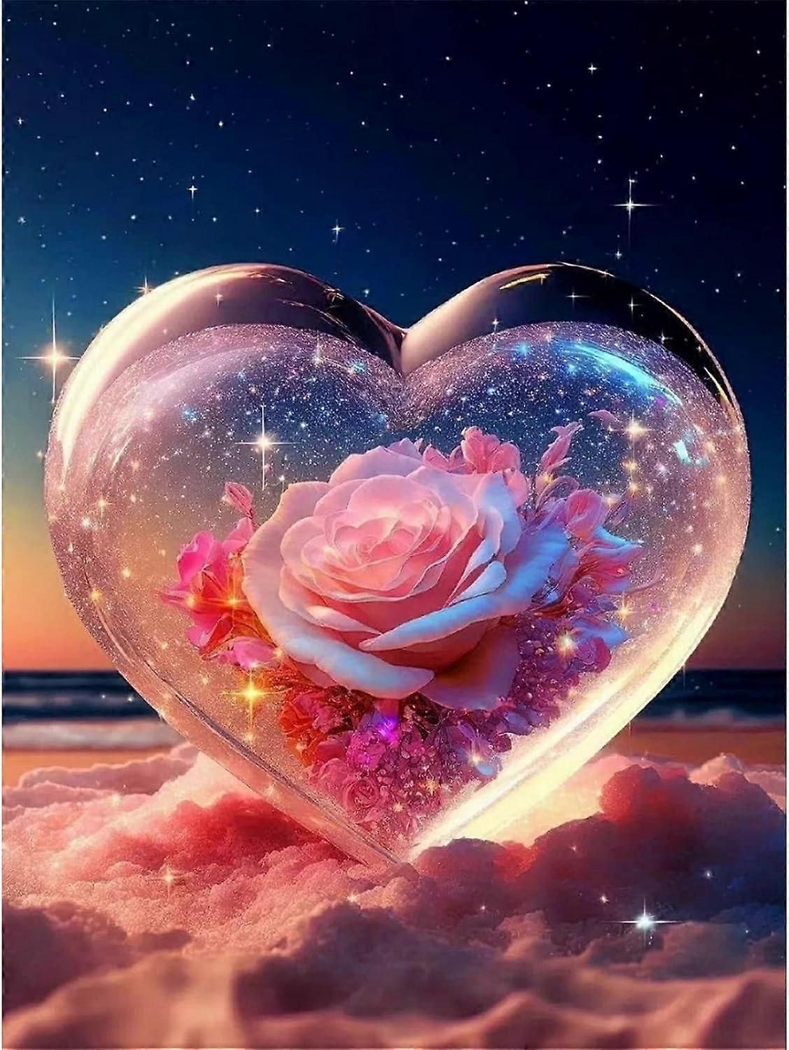 Dww-30 x 40 cm, Pink Heart Diamond Painting Diamond Embroidery Painting5D Canvas Painting for Children and Adults, Rhinestone Puzzle Set, Drawing Wall