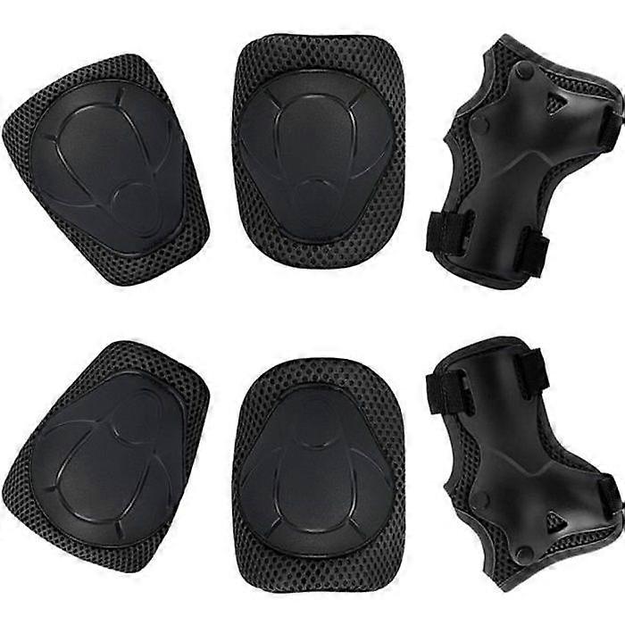 Dww-Set of 6 Children's Protective Pads (Black), Knee and Elbow Protectors, Elbow Pads, for Sports, Cycling, Roller Skating, Ice Skating, Unisex
