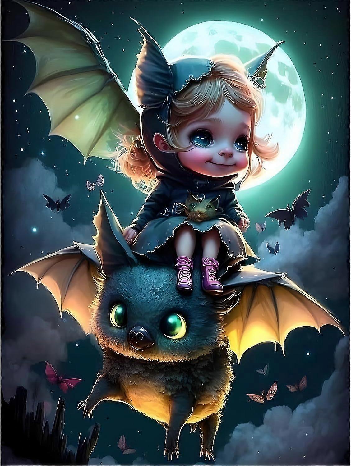 DWW-30 x 40 cm, pretty little girl and her pet Diamond Painting Embroidery Diamond Painting5D Canvas Painting for Children and Adults, Rhinestone Puzz