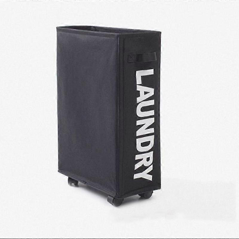 Dww 42-Liter Folding Laundry Basket - Black with 4 Wheels, Laundry Collector, Rectangular Laundry Bin for Home Clothes Storage