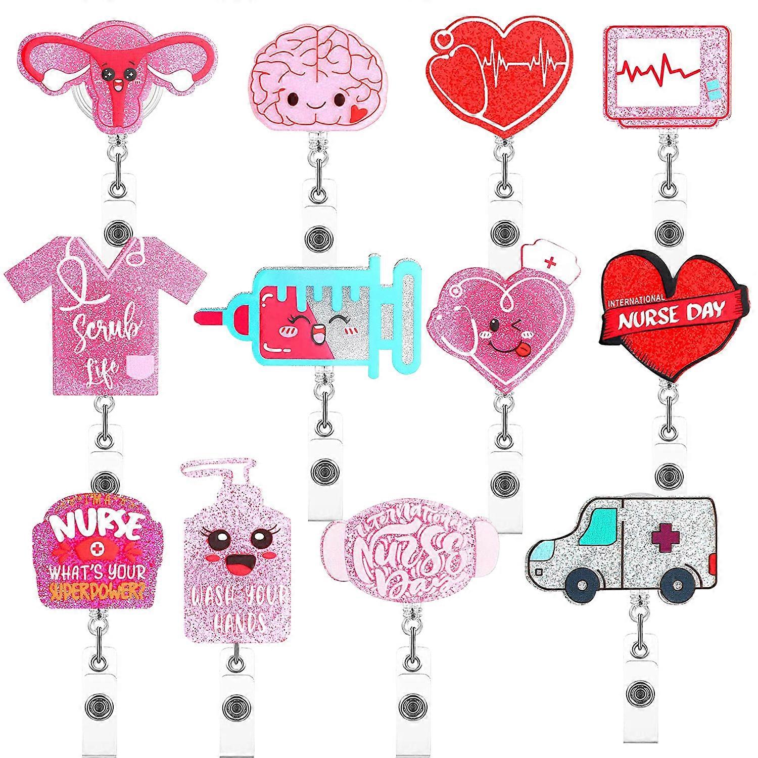 Dww-12-Piece Acrylic Badge Holder for Doctors and Nurses with Retractable Clip, Gift for Students, Retractable Badge Holder, Badge Holder