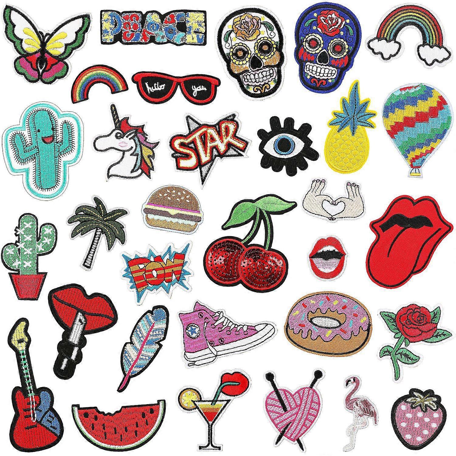 Dww-32 Pieces Donut Iron-On Embroidered Badges for sewing badges onto clothes, backpacks, jeans, hats, and for repairing and decorating