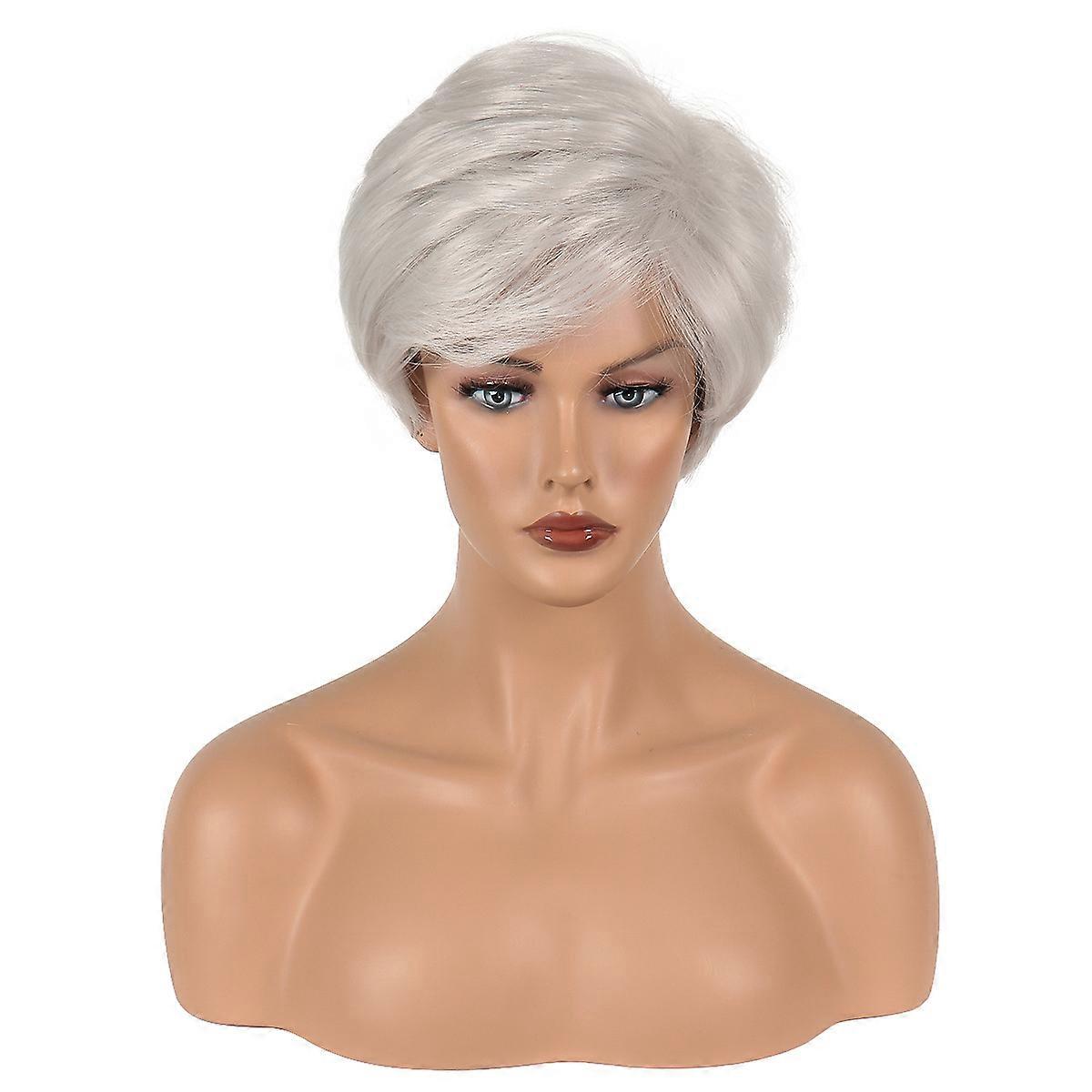 Dww-Short Silver Grey Wig, Synthetic Fiber Wig for Women