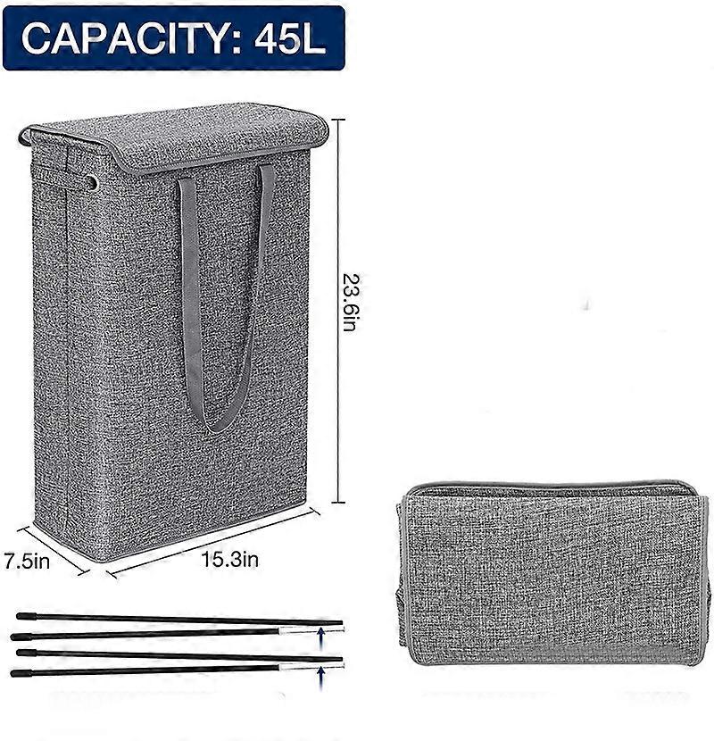 Dww-(Black) 45 Liter Slimline Foldable Laundry Hamper with Lid - Extra Large Capacity Laundry Hamper - 39x19x60cm - Narrow Laundry Hamper