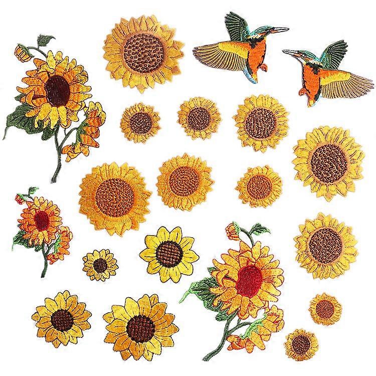 Dww-20 Embroidered Iron-On Badges - Small Daisies for sewing badges onto clothes, backpacks, jeans, hats, and for repairing and decorating