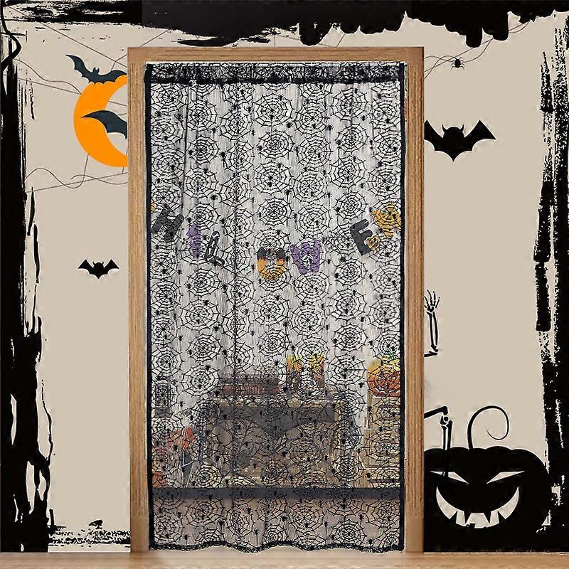 Dww-Black Lace Door Curtains - Spider, 100cm x 200cm Semi-sheer curtains, embroidered curtains for living room and bedroom decoration