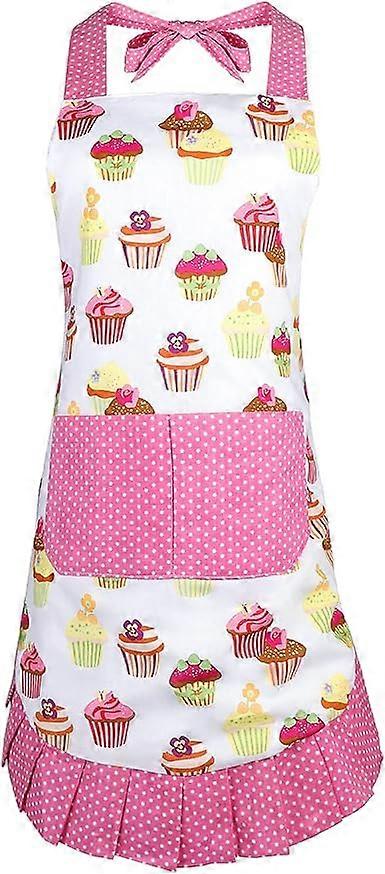 Dww-Pink Apron, Ruffled Kitchen Apron with Pockets, Adjustable Apron for Home Cooking, Restaurant, BBQ