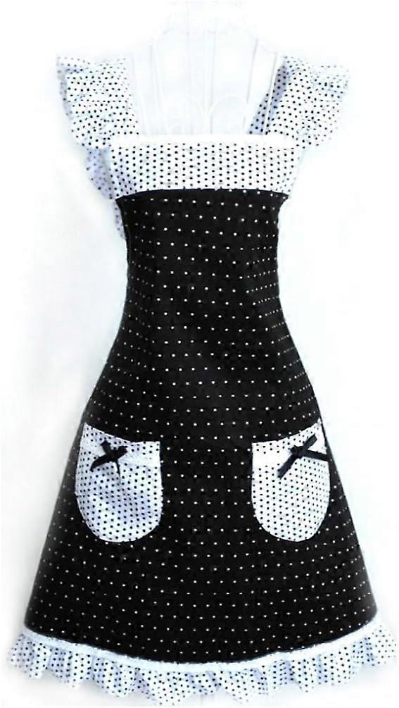 Dww-Cignon Princess Style Polka Dot Ruffled Pattern Kitchen Decoration for Women Cooking Apron with Strap, 2 White Pockets + 2 Black Bows