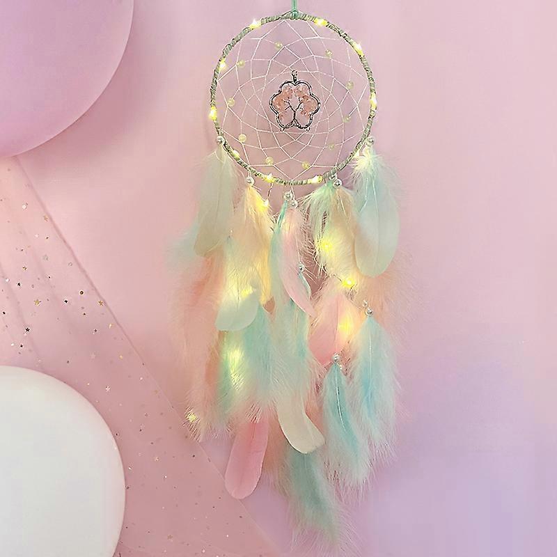 Dww-Colorful Feather Dreamcatcher, Dreamcatcher with Lights, Handwoven Crystal Stone Hanging Wind Chimes, Creative Pendant Gift
