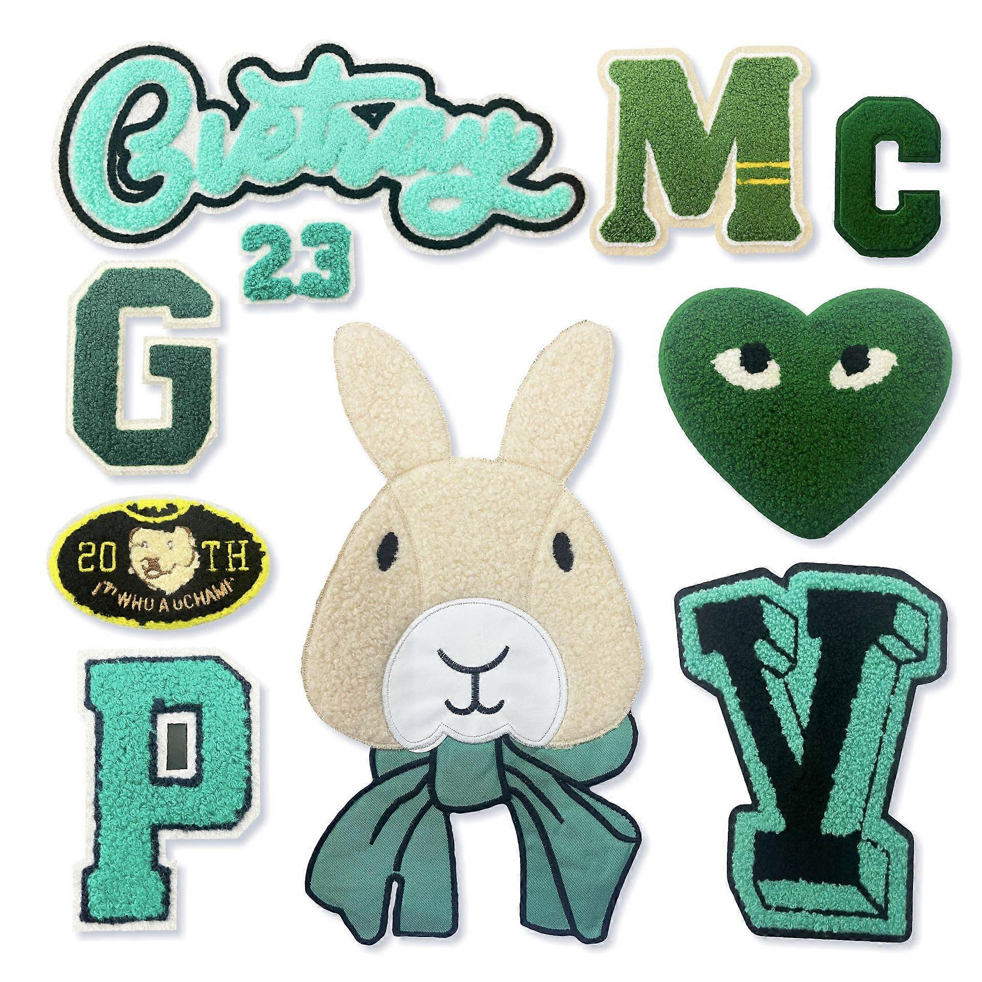 Dww-10 iron-on embroidered patches in an elegant green color palette for sewing and decorating clothes, backpacks, jeans and hats
