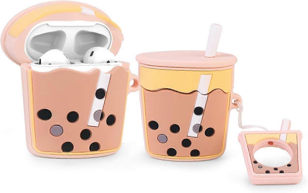 Dww-Cute and fun silicone Airpods case compatible with Apple Airpods 1 and 2 [Fruit Food Series] (Milk Tea)