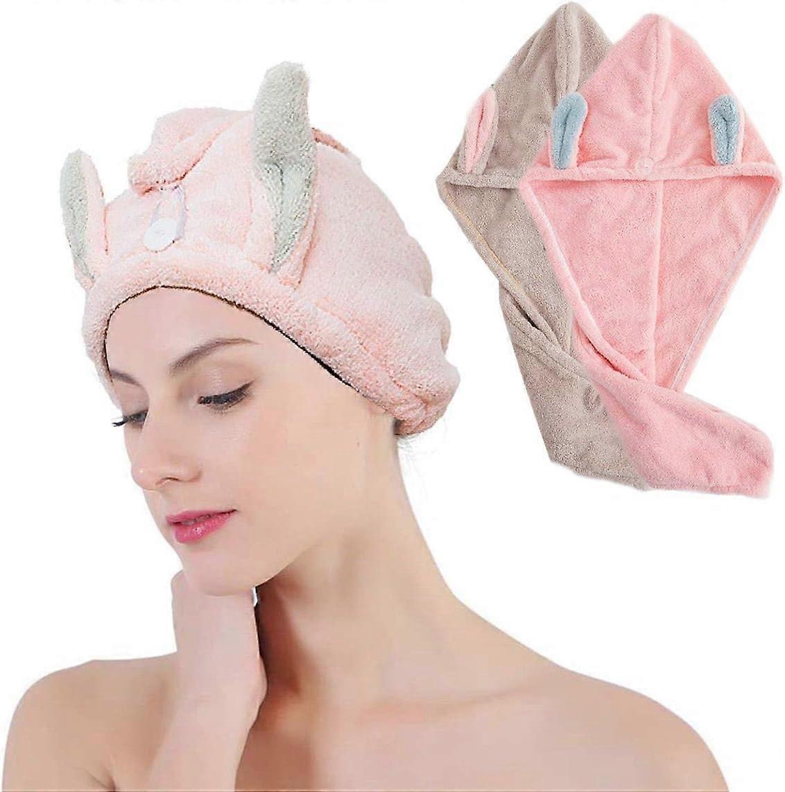 Dww-Hair Towels, 2-Pack Drying Hair Towels, Super Absorbent Microfiber Bandana Hair Towels with Button, Quick-Drying Hair Towels for Women (Pink, Brow