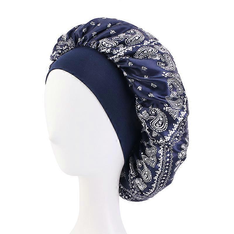 Dww-Round elastic nightcap with vintage floral print (navy) with elastic headband for nighttime sleep