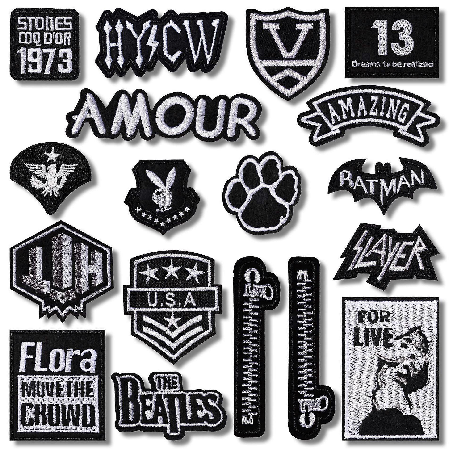 Dww-18 iron-on embroidered patches in a stylish black design for sewing and decorating clothes, backpacks, jeans and hats