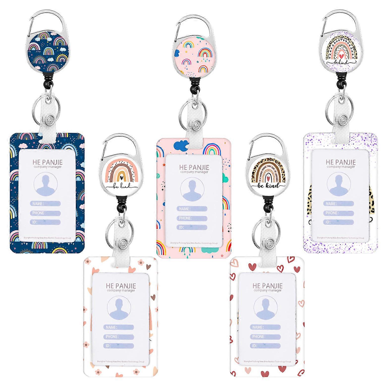 Dww-5pcs-Cute Hand Painted Rainbow Dropper Patch, Round Zinc Alloy, Easy Pull Fastener, Easy Pull Clasp, Boyfriend Brand Famous Card Case