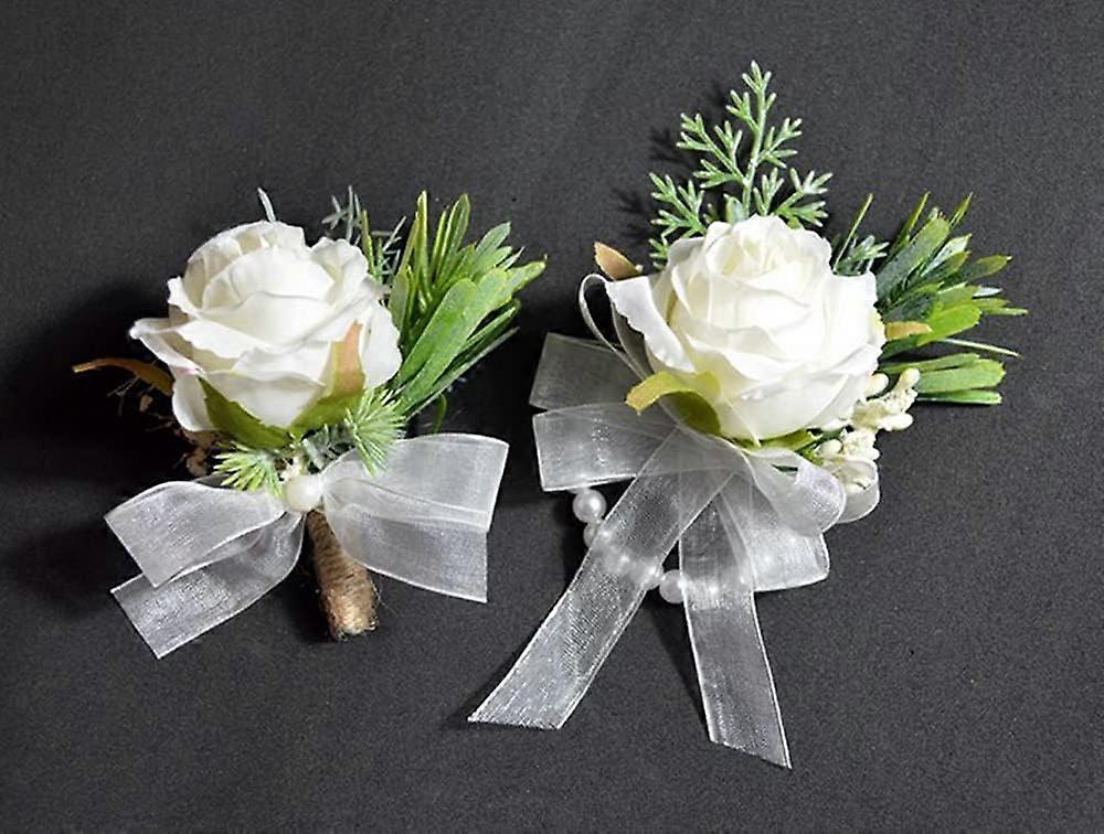 Dww-Lot of 2 Men's White Rose Cuff and Corsage Wedding Corsage, Wedding Party Rose Corsage