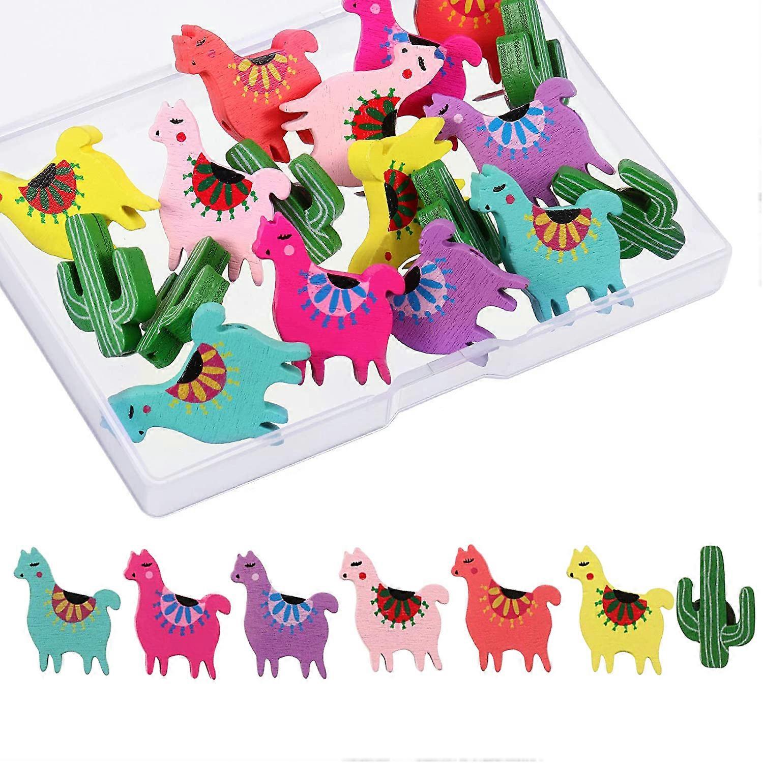 Dww-20pcs-Mixed Colors Pony Alpaca Grass Niba Cactus Wall Decoration Studs Cute Cartoon Metal Wood Nails