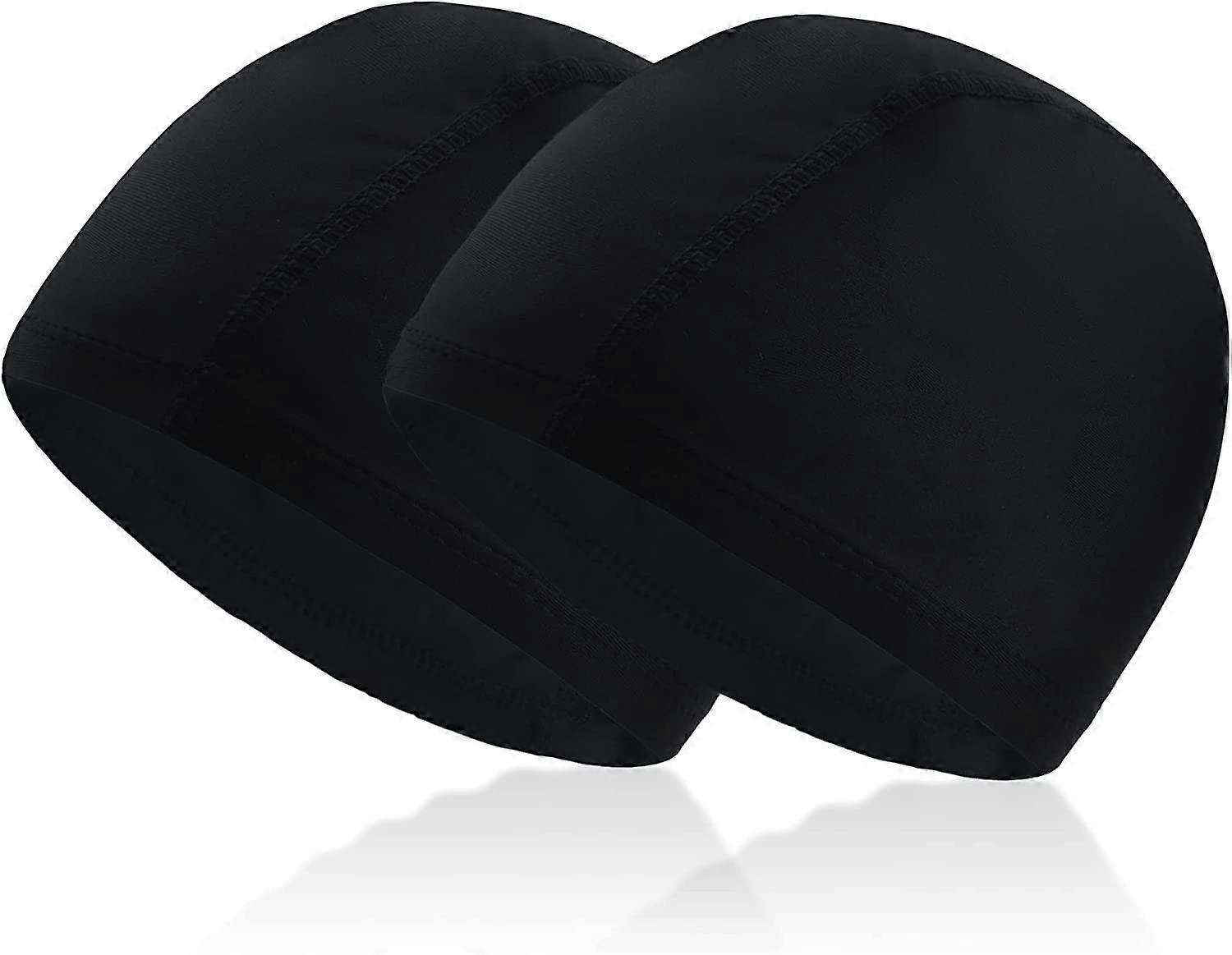 Dww-2pcs Black Swimming Cap for Adults, Soft Polyester Fabric, Unisex Swimming Cap for Children, Adults, Girls, Boys, Men, and Women (Not Waterproof)