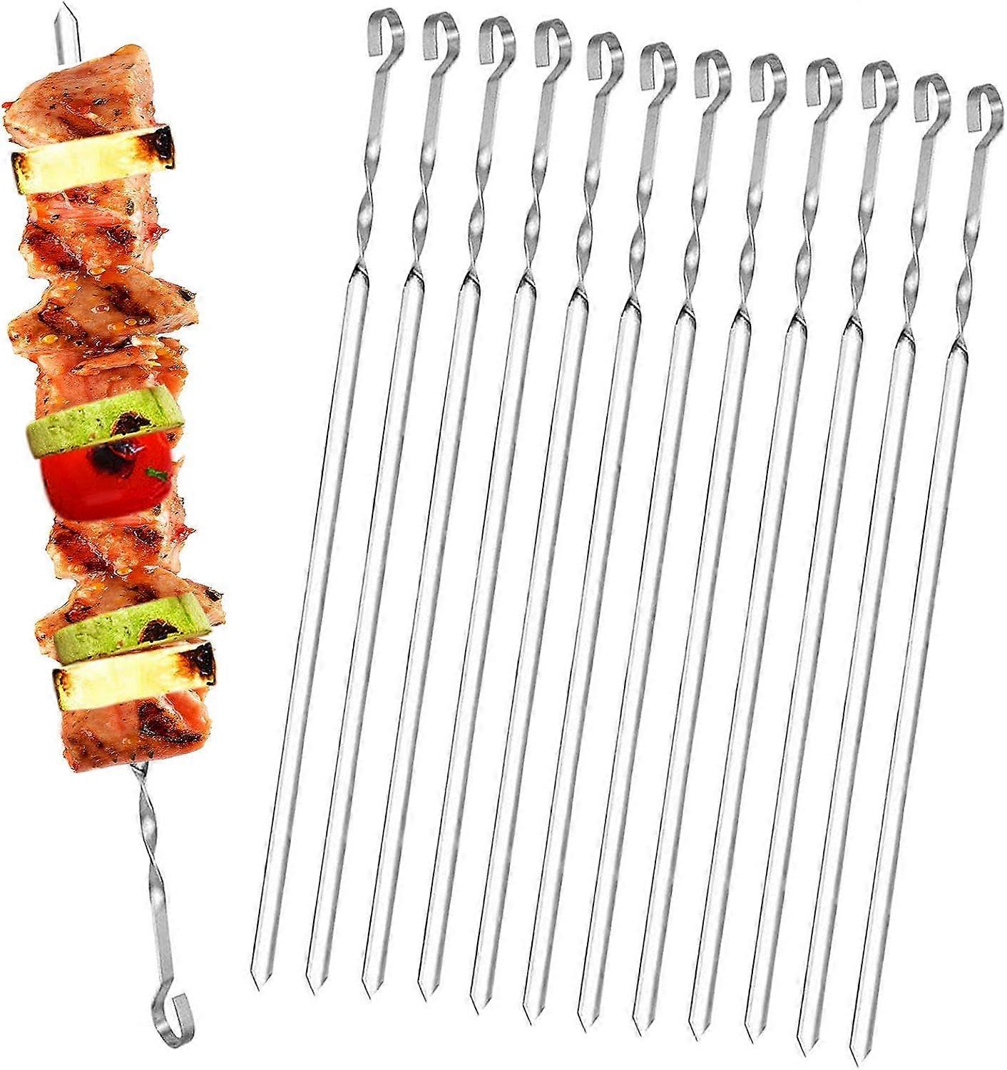 Dww-Set of 20 Stainless Steel Meat Skewers (36 cm) for Barbecue, Flat Metal Skewers